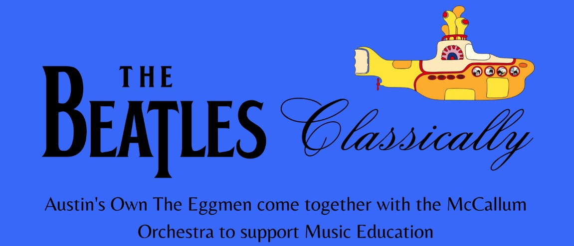 McCallum Orchestra and The EggMen perform together in a magical performance, “The Beatles Classically”. To purchase tickets here. Event proceeds directly support McCallum Orchestra’s music education program.