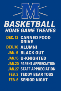 Join us as we cheer on the MAC girls basketball teams each week and have fun with weekly themes. Game schedule linked here.